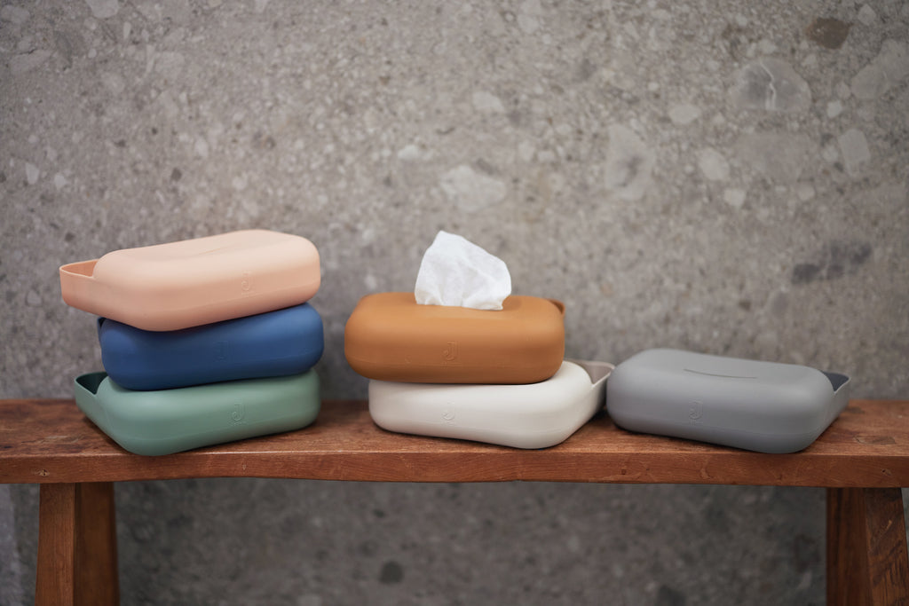 You easily put the wipes back into the box through the opening to prevent them from drying out. The boxes have a handy opening in the middle to remove the wipes one by one. A handy storage tray for nappies is attached to the silicone box. In this way, you have everything at hand to make changing your little one as quick and easy as possible! Place it in your nursery nearby to the changing mat, to make changing your baby's nappies as smooth as possible.
