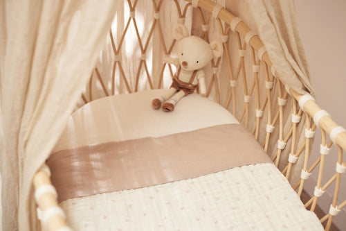 Mit unseren Laken aus Slubstoff in Leinenoptik bekommt die Wiege oder das Gitterbett deines Babys ein echtes Upgrade. Erhältlich in den stilvollen Farben Ivory und Nougat, oder du entscheidest dich für den charmanten Harvest Print. Sorge für eine kuschelige und trendige Atmosphäre im Kinderzimmer, indem du es mit einer Strickdecke von Jollein kombinierst.