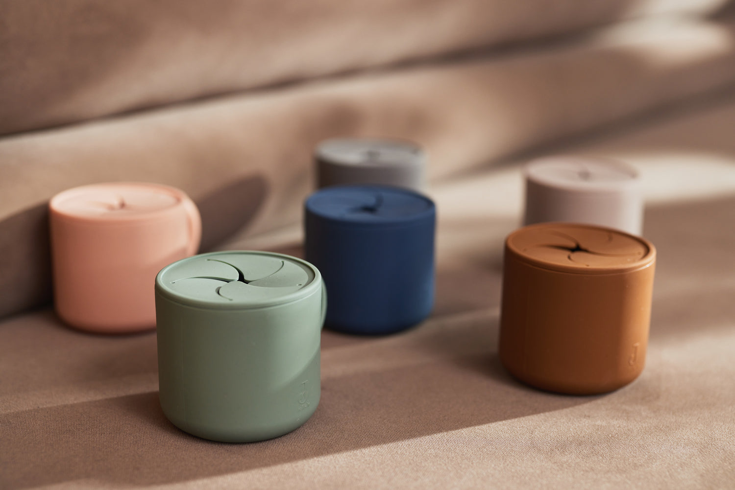Der Snackbecher aus Silikon ist in 6 fröhlichen Farben erhältlich!