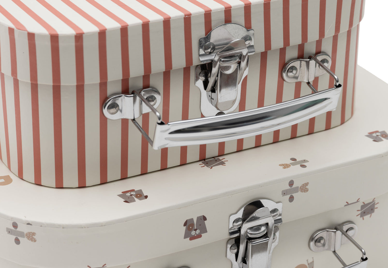 Diese Spielkoffer aus der Animal Friends Kollektion sind perfekt für dein Kind! Der äußere Koffer hat einen fröhlichen Allover-Print, der innere ist in warmem Soft Terra gehalten und zeigt ein süßes Hündchen. Beide Koffer sind innen mit einem Milky Coffee-Karomuster und dem Text „belongs to“ versehen. Ideal zum Aufbewahren kleiner Dinge oder als Hingucker im Kinderzimmer!