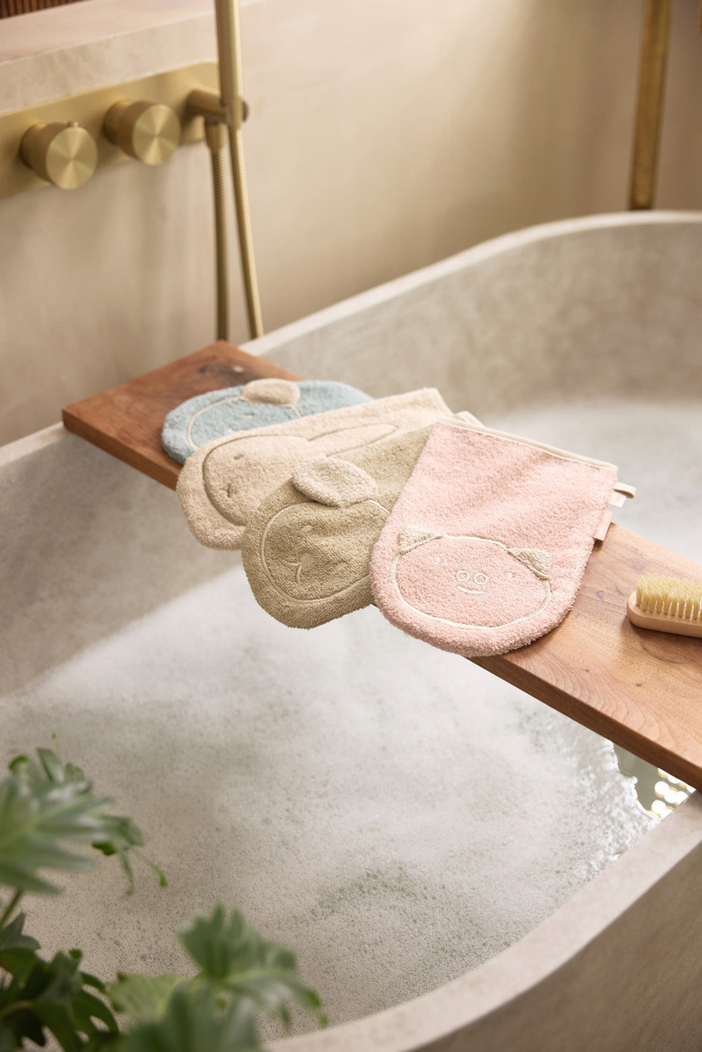 Vous pouvez également utiliser les gants de toilette de Jollein en dehors de la salle de bain, notamment pour nettoyer les mains sales ou le visage de votre nourrisson après le repas.