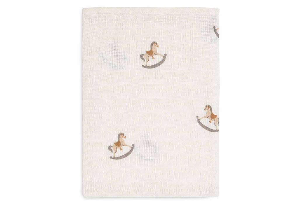 Avec le magnifique thème Nostalgic Ride, où les chevaux brillent comme des étoiles, vous remontez le temps. Le cheval à bascule, compagnon câlin intemporel au centre de ce thème magique, vole la vedette à chaque article. Peu importe qu'il s'agisse des jolies gigoteuses, des mètres de croissance qui mesurent la taille de votre enfant qui grandit comme un chou ou des jolis joujoux, vous retrouverez le joyeux cheval à bascule ! La nostalgie à l'état pur.