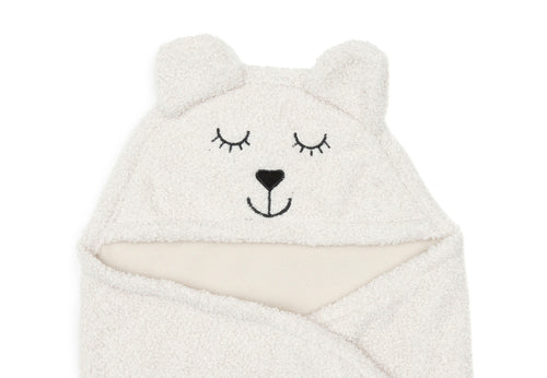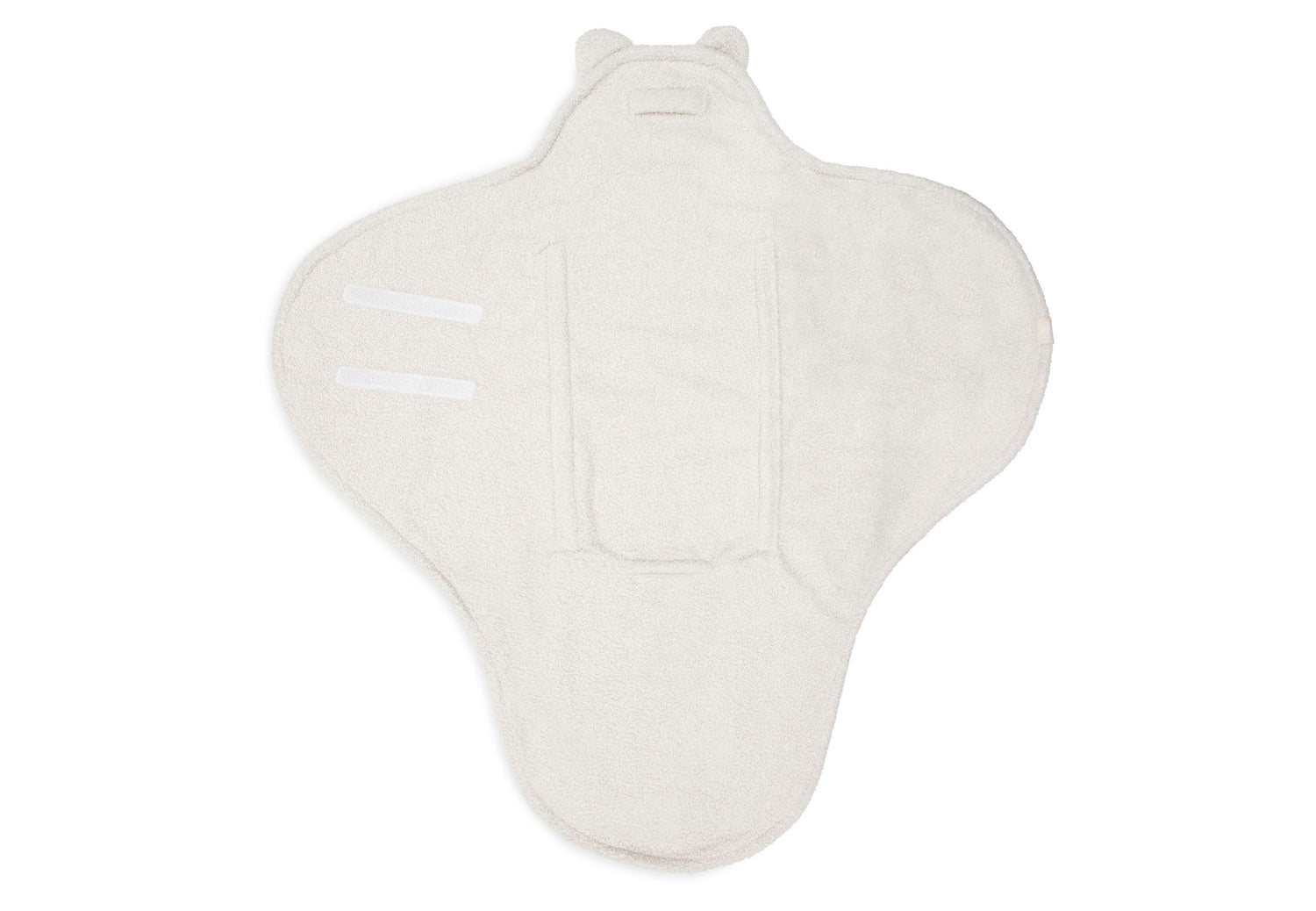 Couverture enveloppante d'une douceur exceptionnelle garantie. Le tissu d'aspect fourrure duveteuse à l'extérieur est merveilleusement confortable et doux à l'intérieur. Enveloppez votre bébé dans cette couverture et fermez-la à l'aide des bandes Velcro pratiques. Ajoutez le petit bonnet et voyez ces mignonnes petites oreilles et le visage de nounours sur le bonnet. Vraiment trop mignon ! Cette couverture peut être utilisée dès la naissance. Elle est également très pratique pour le premier siège auto de bébé. Les ceintures de sécurité se passent à travers les ouvertures de la couverture pour que votre bébé reste bien emmitouflé. Il s'agit d'une couverture universelle pour siège auto Maxi Cosi et toute autre marque de catégorie 0 avec harnais à trois ou cinq points. Disponible en plusieurs couleurs.