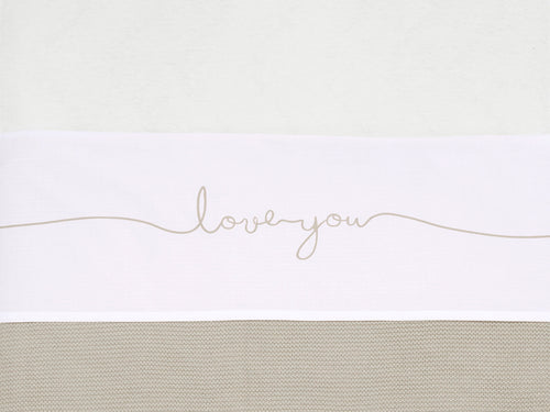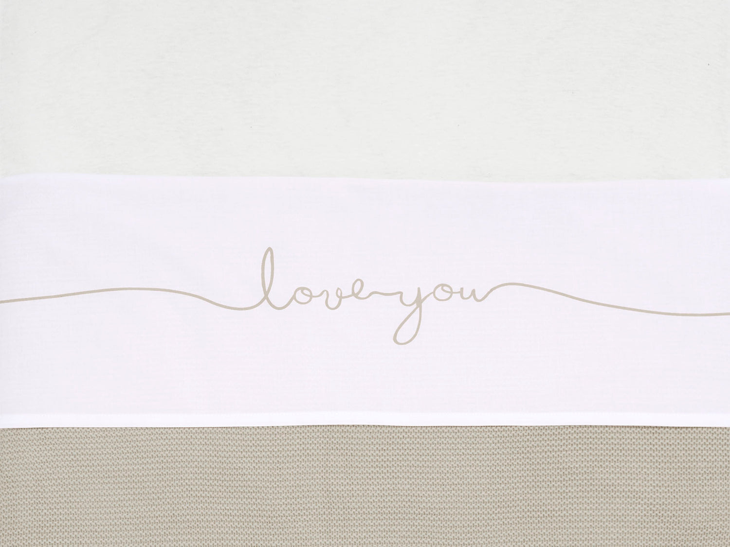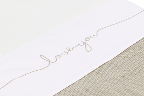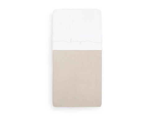 Joli drap blanc avec texte de Jollein. Le drap est fabriqué en coton et a une taille de 75x100 cm. Le drap est blanc et le texte « love you » est de couleur nougat.