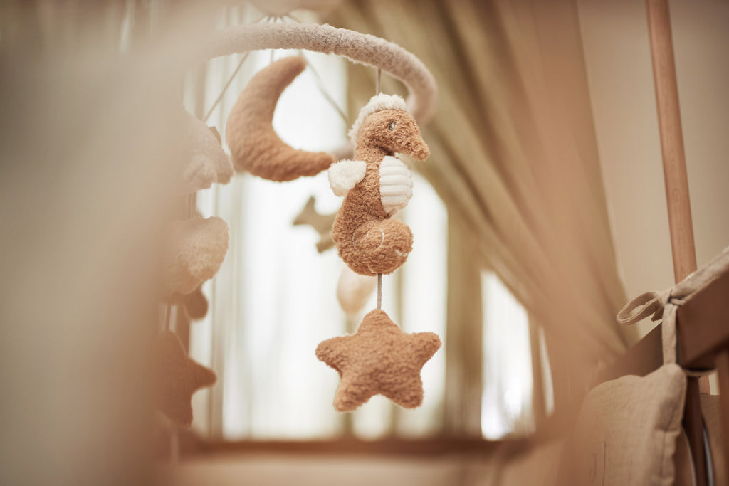 Een babymobiel is een echte must-have voor de box of het ledikant. Zachte figuurtjes die heen en weer dansen, rustgevende bewegingen en subtiele kleurtinten—perfect om je kleintje te kalmeren én te laten ontdekken. Of je nu een momentje van rust wilt creëren of de zintuigen van je baby wilt stimuleren.