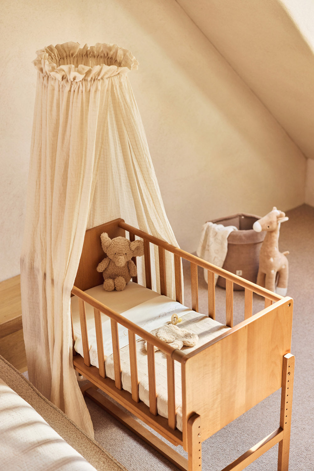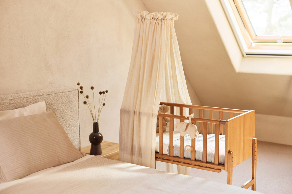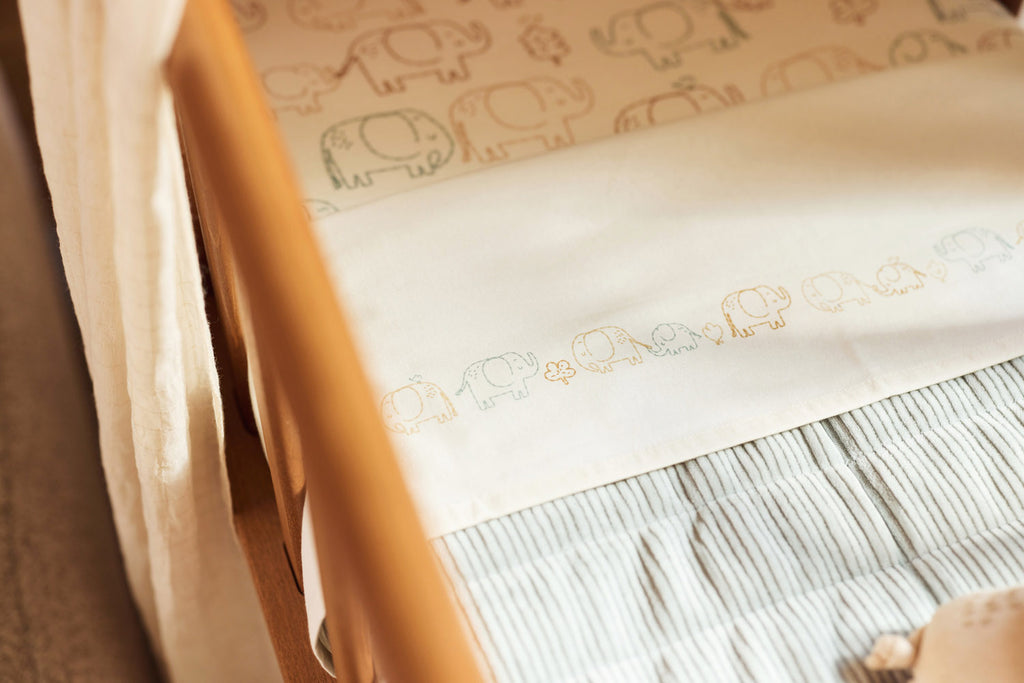 How special is it to go on an adventure together? In Elephant Tales, a big elephant takes its little one along, safe under its large ears and always close by. The sweet illustrations, with delicate lines and soft tones like Sea Green, Biscuit, and Milky Coffee on an Oatmeal background, give the nursery a warm and playful feel. Beautifully combined with the Milky Coffee Box Knit, Sea Green Rib blankets, and Cosy Knit Sea Green. A loving theme that grows along with your most beautiful moments together.