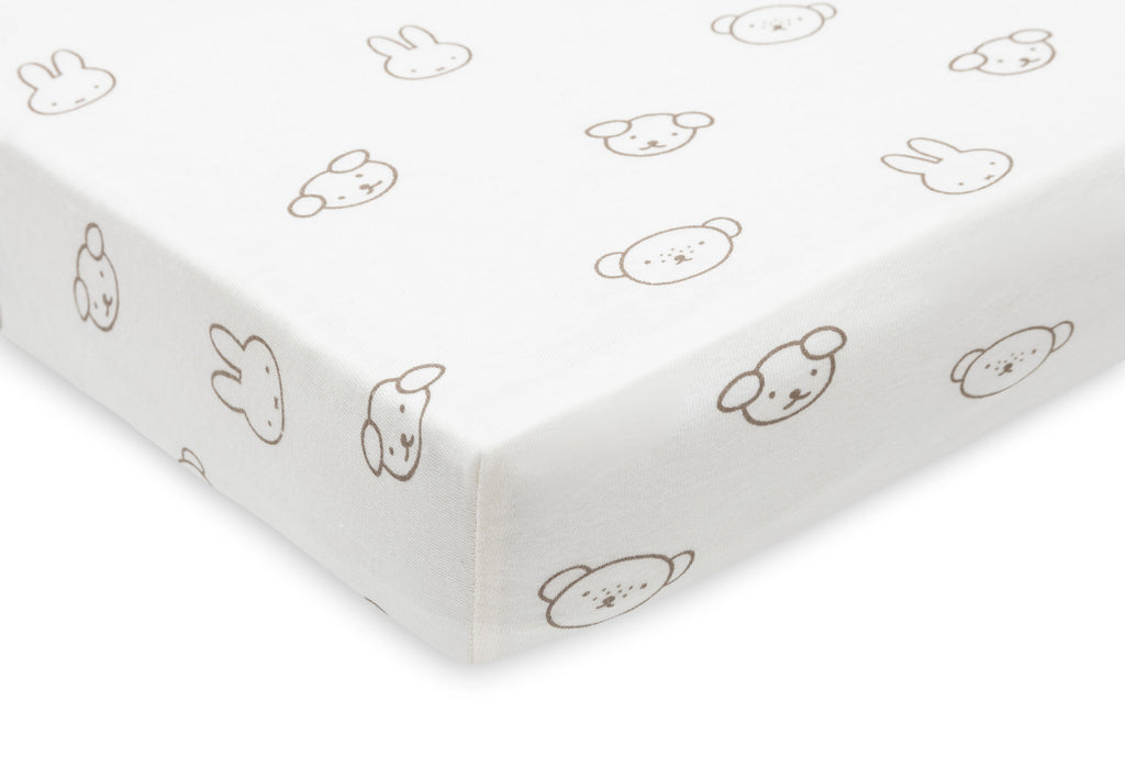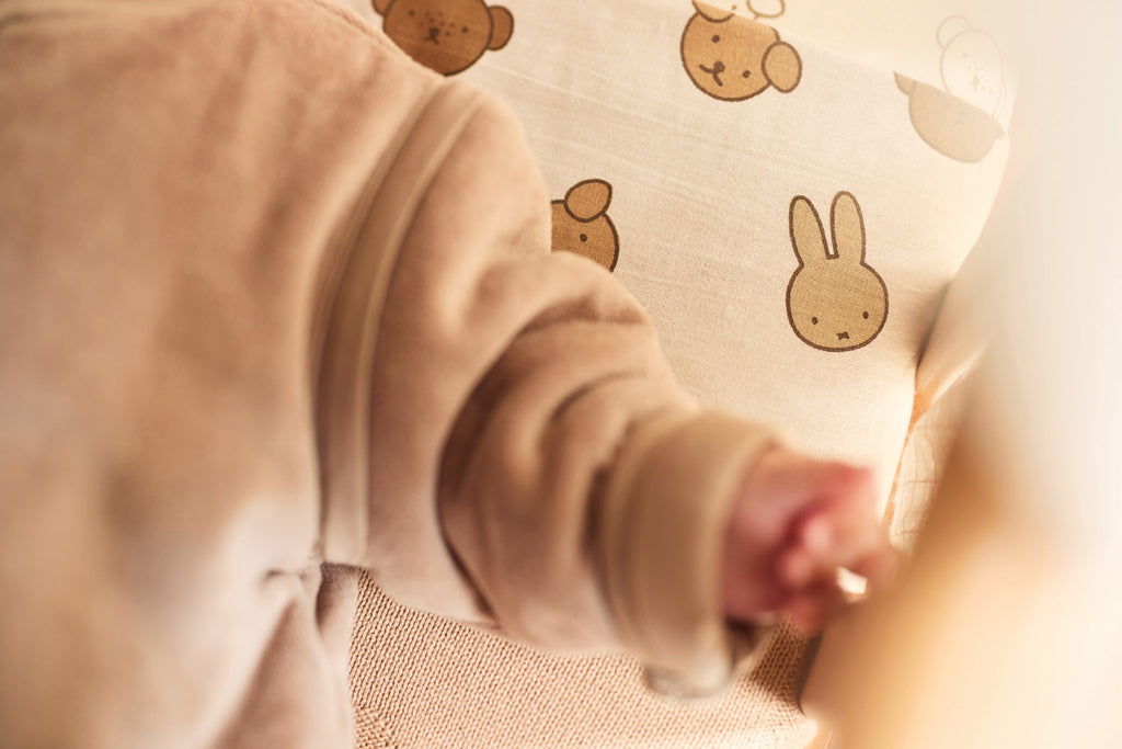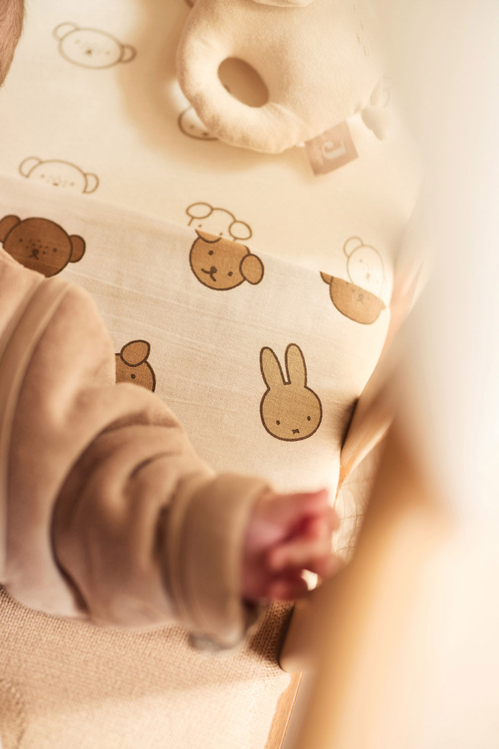 Voor alle papa en mama’s die net zo dol zijn op Miffy als hun kleintje! In dit knusse thema staat Miffy centraal, met heerlijke jersey, hydrofiel en zachte teddy jacquard stoffen. Ook haar vriendjes Boris, Snuffy en Grunty komen tot leven in de zachte tinten Biscuit en Ivory. Ontdek onze prachtige Miffy dekentjes, commodemandjes en opbergzak, en geef de babykamer een speelse en stijlvolle touch met Miffy & Friends!