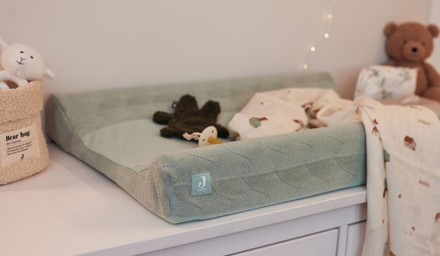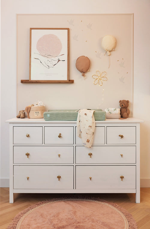 Met het formaat 50x70 cm past deze hoes bij het Jollein aankleedkussen en om elke standaard formaat aankleedkussen.