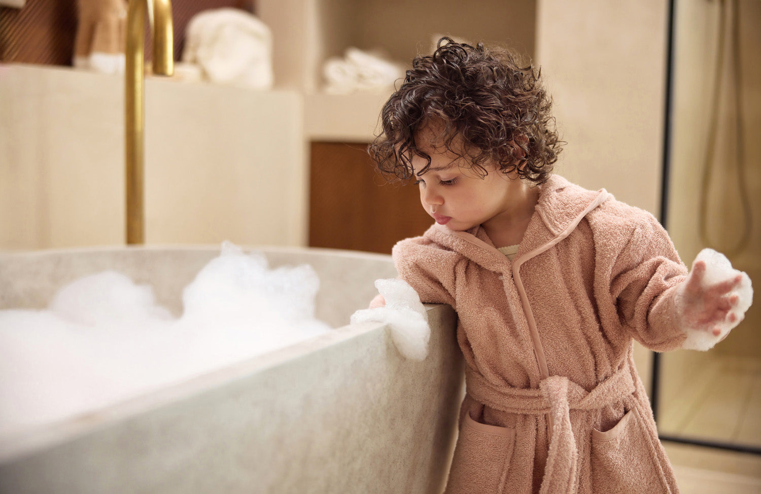 Hoe leuk is dit badjasje? De badjas is perfect om te gebruiken na het badderen, douchen of zwemmen. De zachte badstof neemt gemakkelijk water op en houdt daarmee jouw kleintje lekker warm. De vrolijke capuchon met oren droogt gemakkelijk de haartjes. Het badjasje is ook handig om mee te nemen op vakantie of mee naar een logeerpartijtje. Het badjasje heeft een handig drukknoopje om hem dicht te houden bij het dragen, elastiek in het rugpand voor de perfecte pasvorm en de ceintuur zit aan het badjasje vast zodat je hem niet kan verliezen. De badjas is verkrijgbaar in de kleuren: Ash Green, Sea Green, Biscuit, Caramel, Ivory, Jeans Blue, Nougat, Wild Rose, Pale Pink en Biscuit. Bekijk ook onze gestreepte badjasjes!