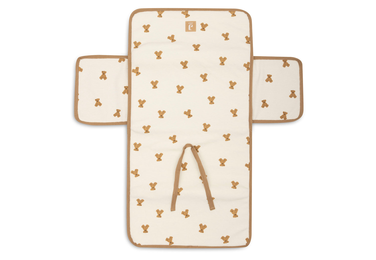 Ons zachte verschoningsmatje is de perfecte must-have voor onderweg! Deze verschoningsmat heeft de herkenbare Little Waffle structuur aan de buitenkant met een all-over Mini Teddy Bear printje. De binnenkant is gemakkelijk schoon te maken met een doekje. Het matje heeft handige opbergzakken voor het bewaren van babybenodigdheden en sluit met een strikje voor extra gemak. Praktisch én superlief voor onderweg!