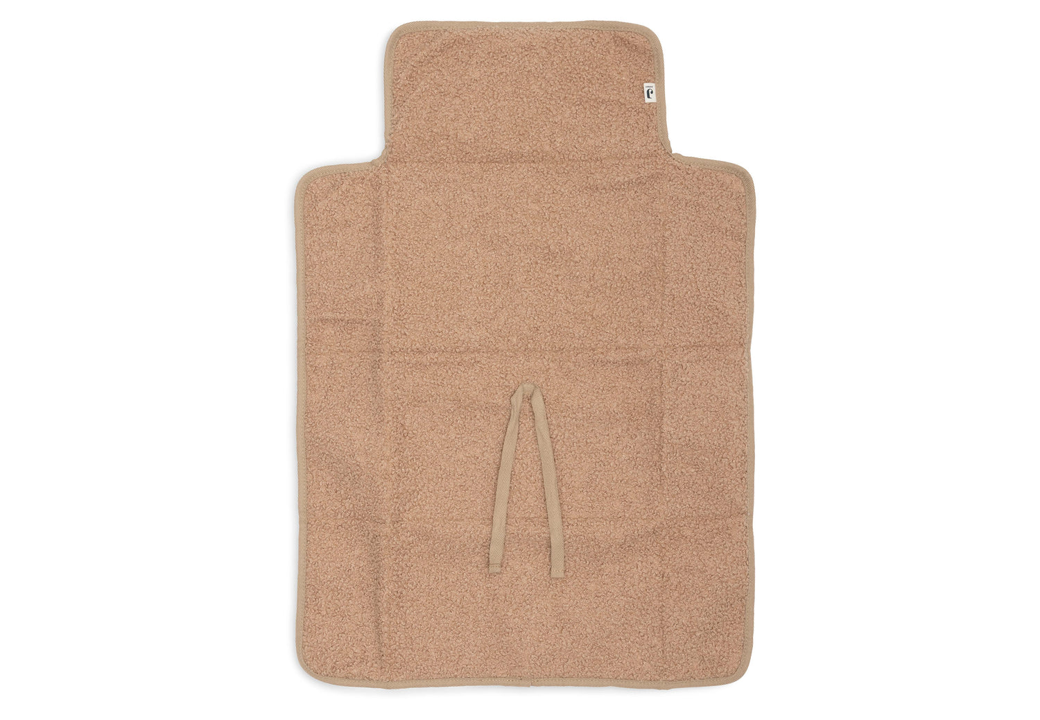 This Boucle changing mat is nice and soft, removable and water-resistant. That is really nice for small accidents. After an accident, you can just put the mat in the washing. You fold the changing mat after use and close it up with handy cords on the top. Do you want it to match completely with your bag? Then go for our beautiful embroidery diaper bag, because it really is a perfect combination.