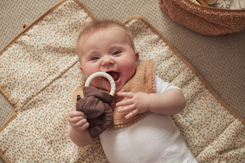 The Boucle changing mat fits well with the other Boucle items but also perfectly with the Embroidery bag from Jollein.