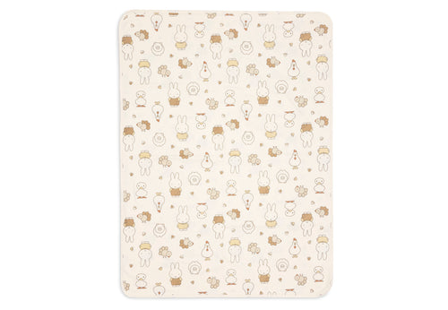 This sweet blanket from the Miffy Family Farm theme features an all-over print of Miffy and her farm friends. The soft jersey fabric, calming oatmeal background and warm tones give the blanket a timeless and cosy look. Perfect for styling the crib and easy to combine with other items from the Miffy Family Farm collection. A lovely addition to the nursery!