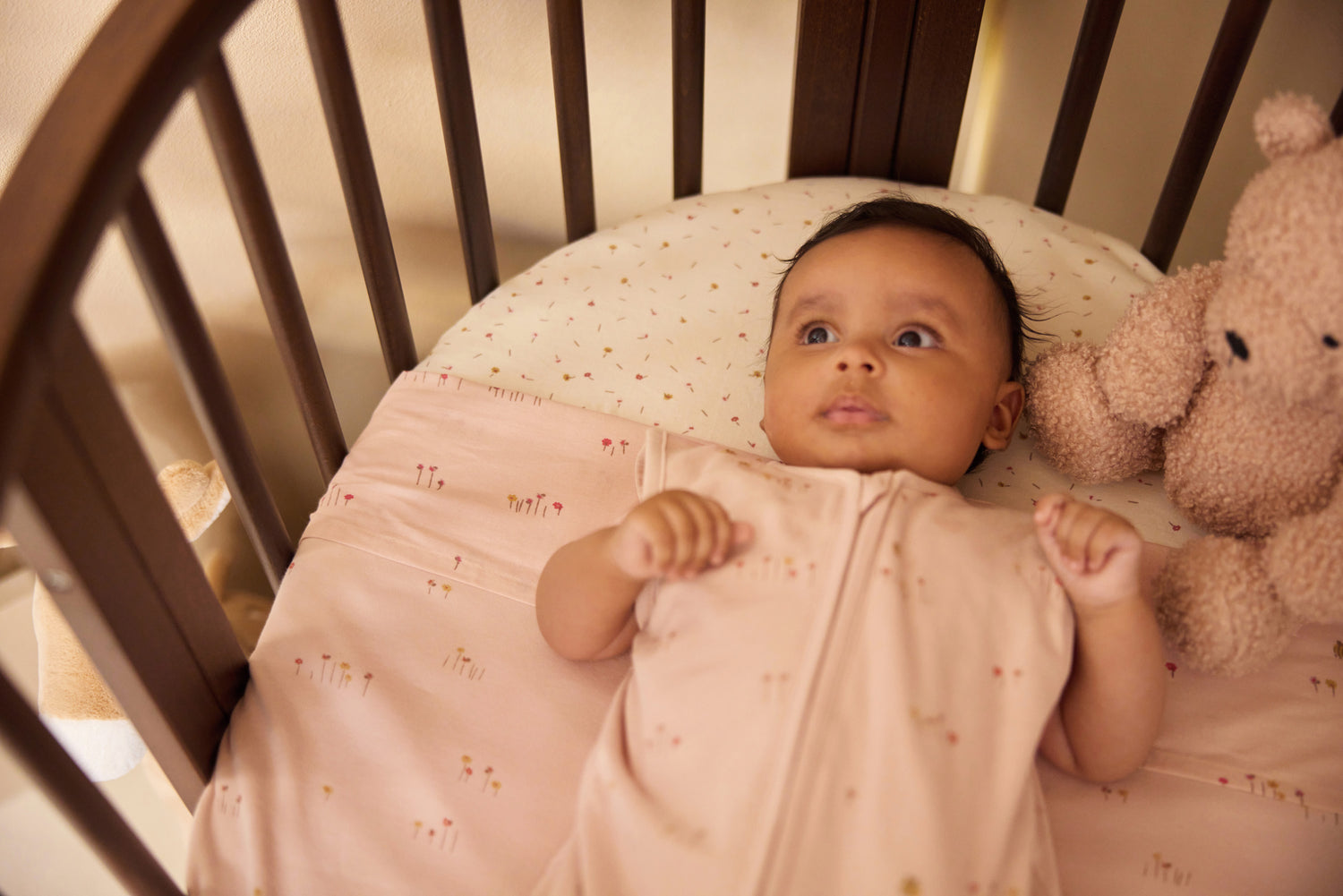 This adorable fitted sheet ensures your little one sleeps softly and comfortably. Made from jersey fabric, it feels smooth, is breathable, and stretches easily. The elastic edges keep the sheet neatly in place, even when your baby moves around at night. That way, the bed stays nicely fitted, without any extra effort from you. The playful print adds a cheerful touch to the crib without being too busy. Looking for something more subtle? Jollein also offers fitted sheets in uni colours.