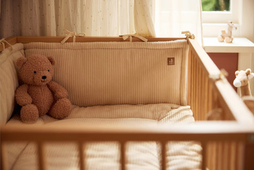 This playpen bumper is super soft and provides maximum comfort for your little one. The ribbed outer fabric feels lovely, while the teddy inner lining adds extra coziness. Best of all? It’s reversible—perfect for switching up the look. Ideal for the playpen!